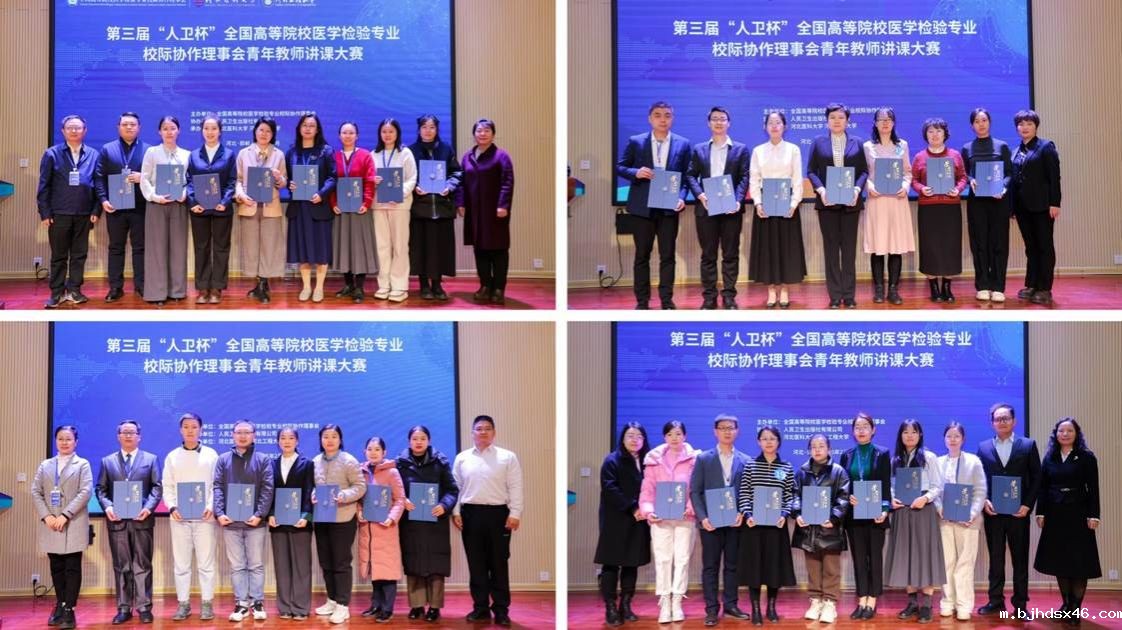 第三届“人卫杯”全国高等院校医学检验专业校际协作理事会青年教师讲课大赛于2025年2月14日~17日在河北省邯郸市举办,本次“人卫杯”比赛由全国高等院校医学检验专业校际协作理事会主办,人民卫生出版社协办,河北医科大学和河北工程大学联合承办,旨在提升医学检验专业青年教师的教学水平,促进校际之间的教学交流与合作,推动医学检验教育事业的发展。我校教育部高等学校医学技术类专业教学指导委员会委员、全国高等院校医学检验专业校际协作理事会副理事长刘新光教授受邀担任本次组织委员会专家,星空体育下载党委书记阮杰带领4位青年教师参加了本次“人卫杯”青年教师讲课大赛。