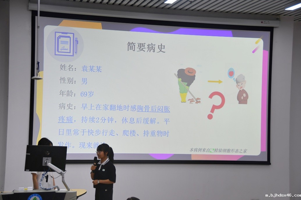 血液病案例分享比赛共有14支参赛队伍,同学们精心遴选病例,标题画龙点睛,内容引人入胜,以逐层展开讲述、游戏交互、小剧场、角色扮演等多种方式展示PPT,演讲生动有趣、循证分析、拨茧抽丝,将各项检查项目融会贯通运用在一个个病例故事之中。有的一波三折,经过化身“福尔摩斯”,凭借细微之处的“蛛丝马迹”将困扰病人的谜团“真相大白”;有的则诙谐幽默,以风趣的情景再现调动大家的情绪,随后趁热打铁、层层递进,将血液病知识娓娓道来……最后还不忘抒发所学过程中真切而独特的感悟。