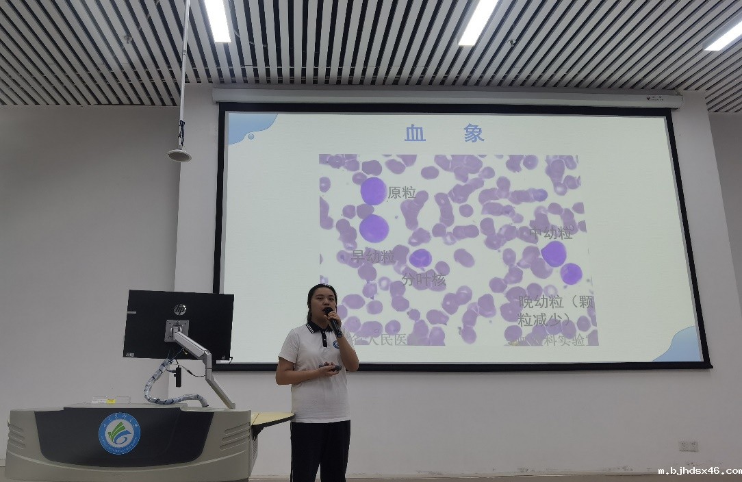 本次活动由2021级细胞形态班班主任谢朝阳老师组织。谢老师简单阐述了本次活动的目的及意义,本次任务是在同学们了解细胞的“趣说细胞”之后,再次利用寒假、课余时间收集细胞图册、辨认细胞,并运用细胞形态知识及其他检验技术综合解决临床实际问题,初步养成血液病检验临床诊断思维,以提升同学们的未来岗位胜任力,她祝愿同学们能赛出自己的水平,同时也认真观摩其他同学的分享,这样才能知不足而奋进,望远山而前行!