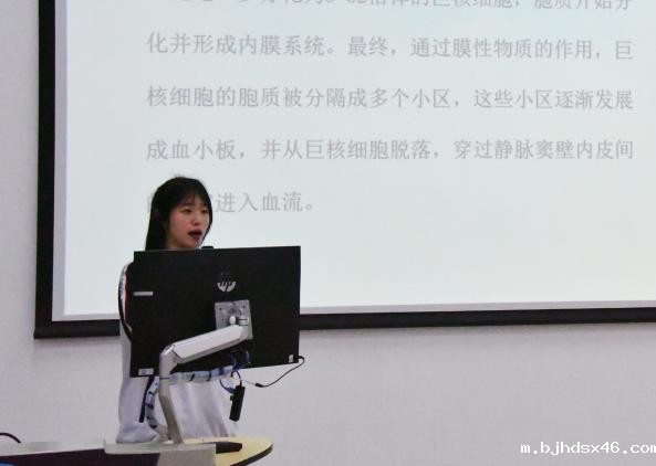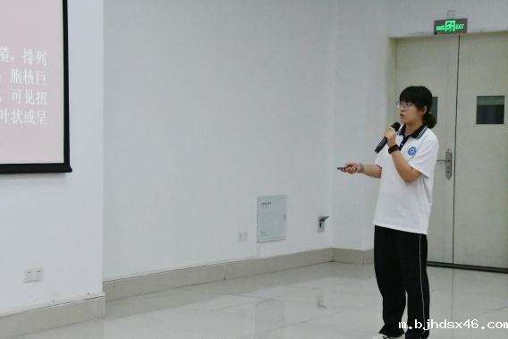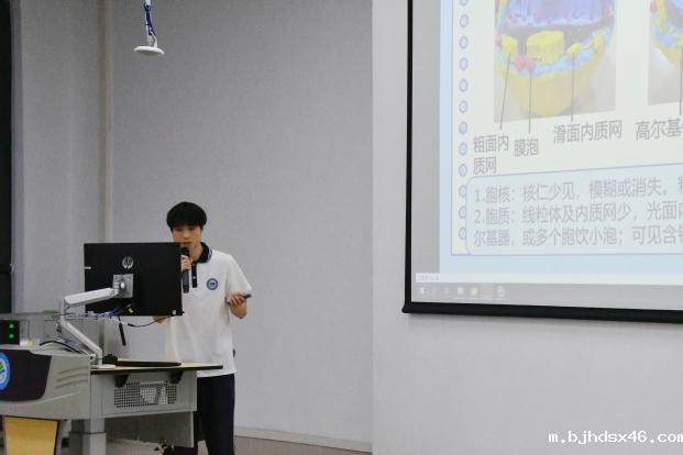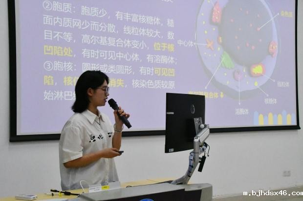 各组选手结合PPT对自己的模型进行了生动的汇报解说。他们用精炼的语言阐述了细胞各组成部分的结构特点,揭示了细胞本身发挥的作用,还探讨了细胞在疾病诊断的意义。