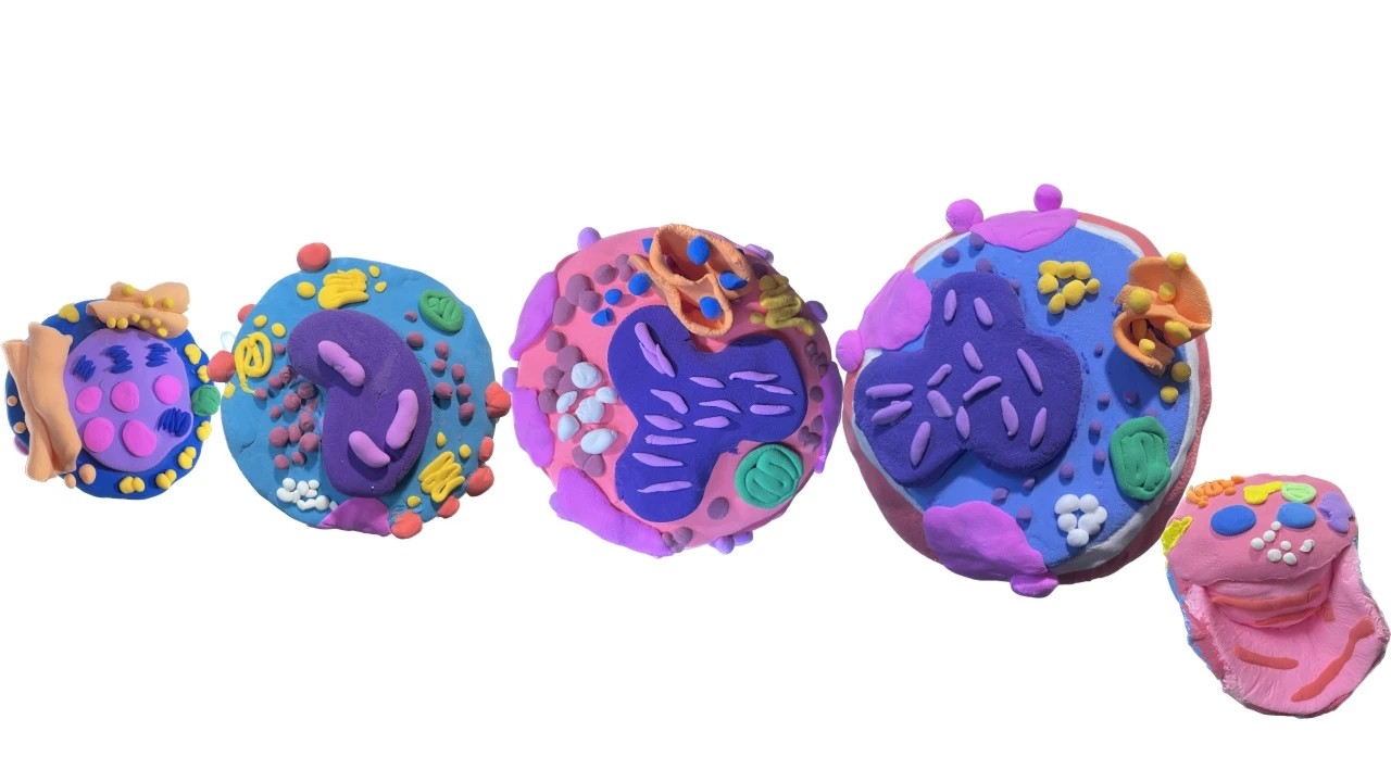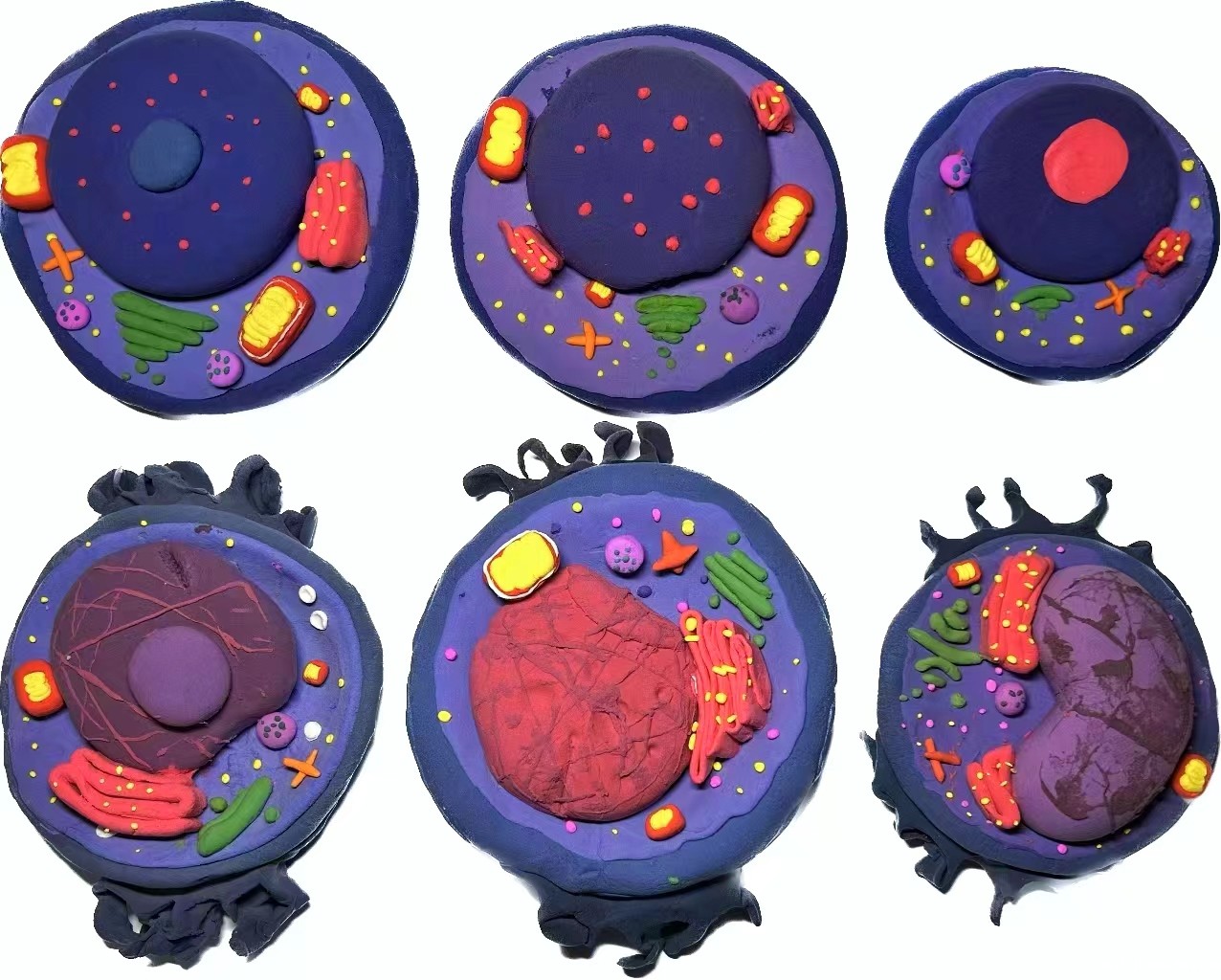各组选手将自己精心制作的作品置于台上,这些模型制作精美,而且富有创意,生动地展现了细胞内部的复杂结构。选手们向评委介绍自己的模型,讲述对所选细胞系统的认知及制作构想,并回答评委的提问。在轻松愉快的氛围中,师生们就细胞模型的制作、细胞结构等话题展开了讨论。选手们在与老师的交流中,查漏补缺,增进自身对细胞超微结构的理解。