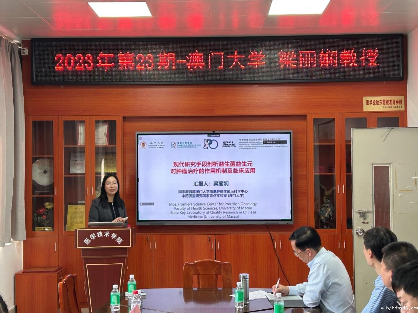 徐军发院长首先介绍了梁丽娴教授,对梁丽娴教授的到来表示了热烈欢迎,并就梁丽娴教授对学院各项工作的支持表达了真挚的感谢。随后,梁丽娴教授做了“现代研究手段剖析益生菌益生元对肿瘤治疗的作用机制及临床应用”的专题学术报告。